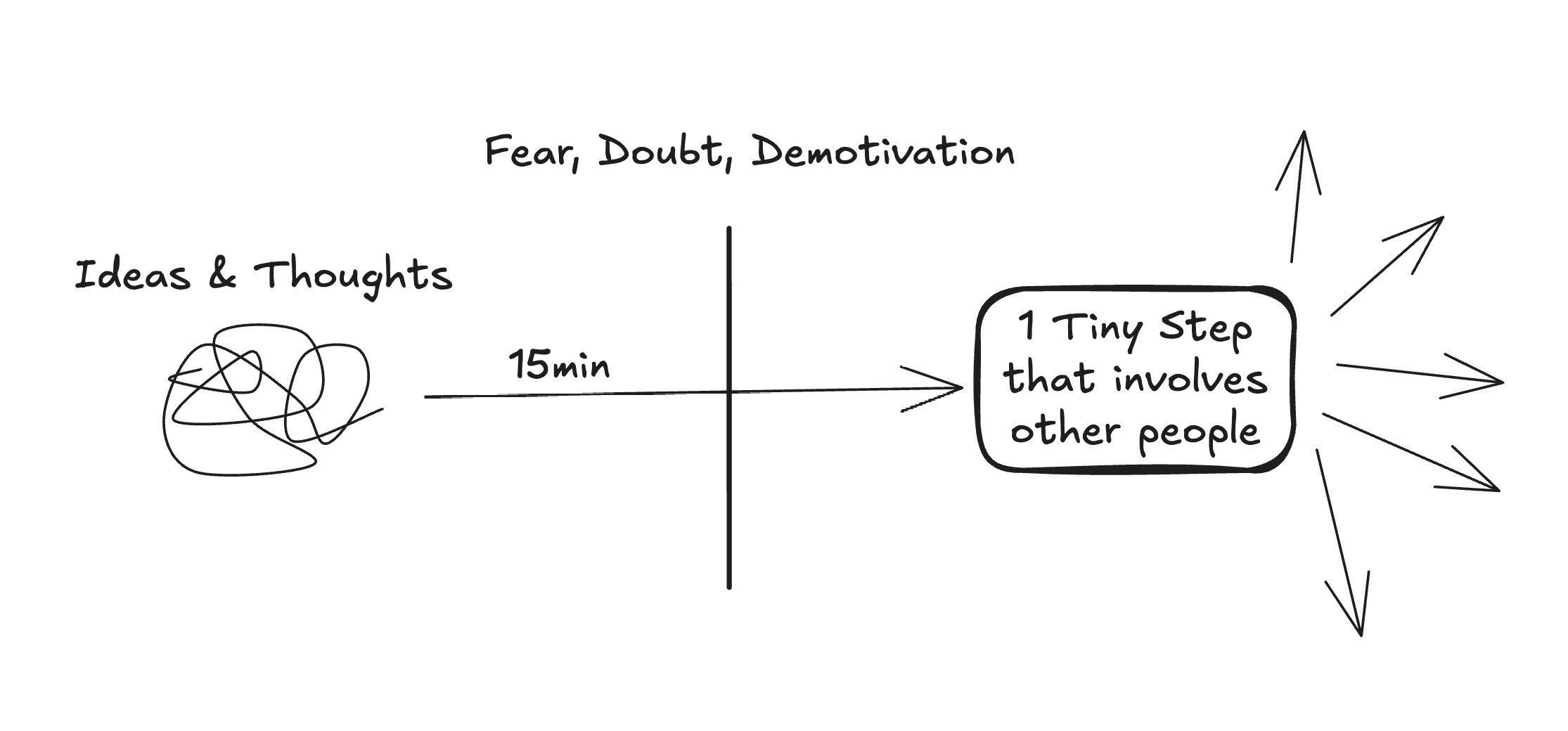 The big misconception I think, is that this first tiny step takes a lot of effort. We postpone and postpone it, week after week. But at the end it would have been 15 minutes of execution to get things going and gain clarity about your idea.